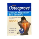 Osteoprove یک مکمل تغذیه ای کامل برای حفظ سلامت و استحکام استخوان ها است که ترکیبی از مواد معدنی ضروری مانند کلسیم ، منیزیم ، زینک و ویتامین دی را در خود دارد . این فرمولاسیون ویژه ، به بهبود جذب کلسیم در بدن کمک کرده و از پوکی استخوان ، ضعف عضلانی و درد مفاصل پیشگیری می کند .